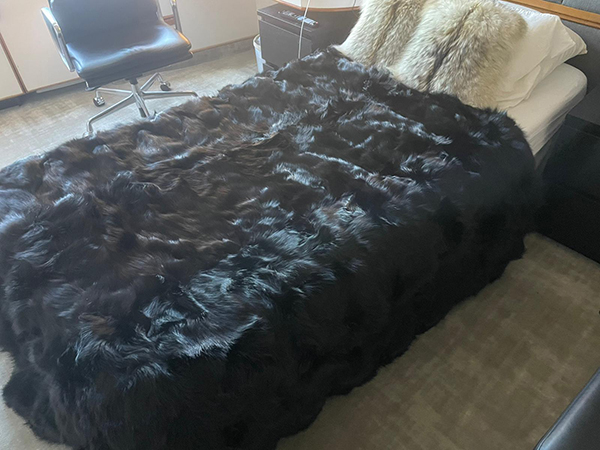 Alaska Fur Gallery Anchorage, black fox bed spread finally arrives on board, after a 7 month wait. |